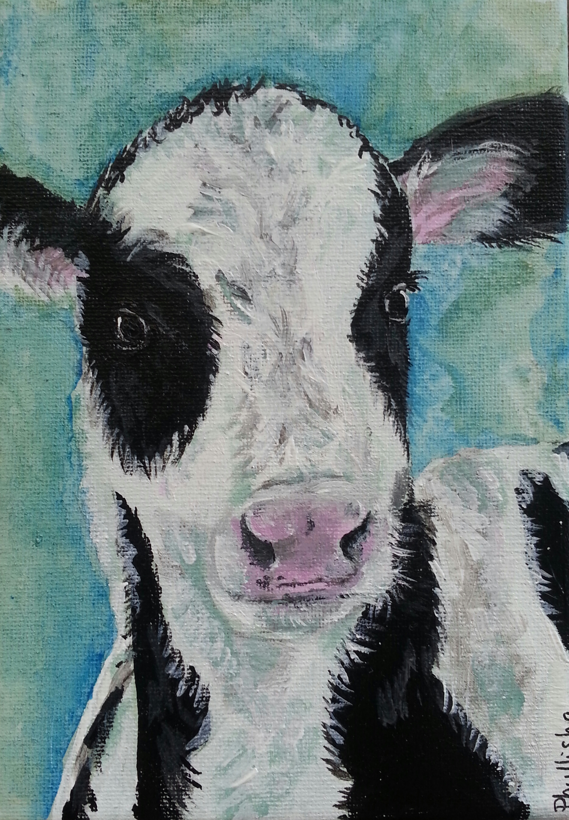 Below are two calf paintings I just finished. Her name is Peewee and I hope she brings a smile to your face as she does to mine! Bidding is on Daily Paint Works; a site for artists to sell their work. They convert to standard ‘buy’ once auction is over. Prices start at only $25 with free shipping! Click here for purchase information.