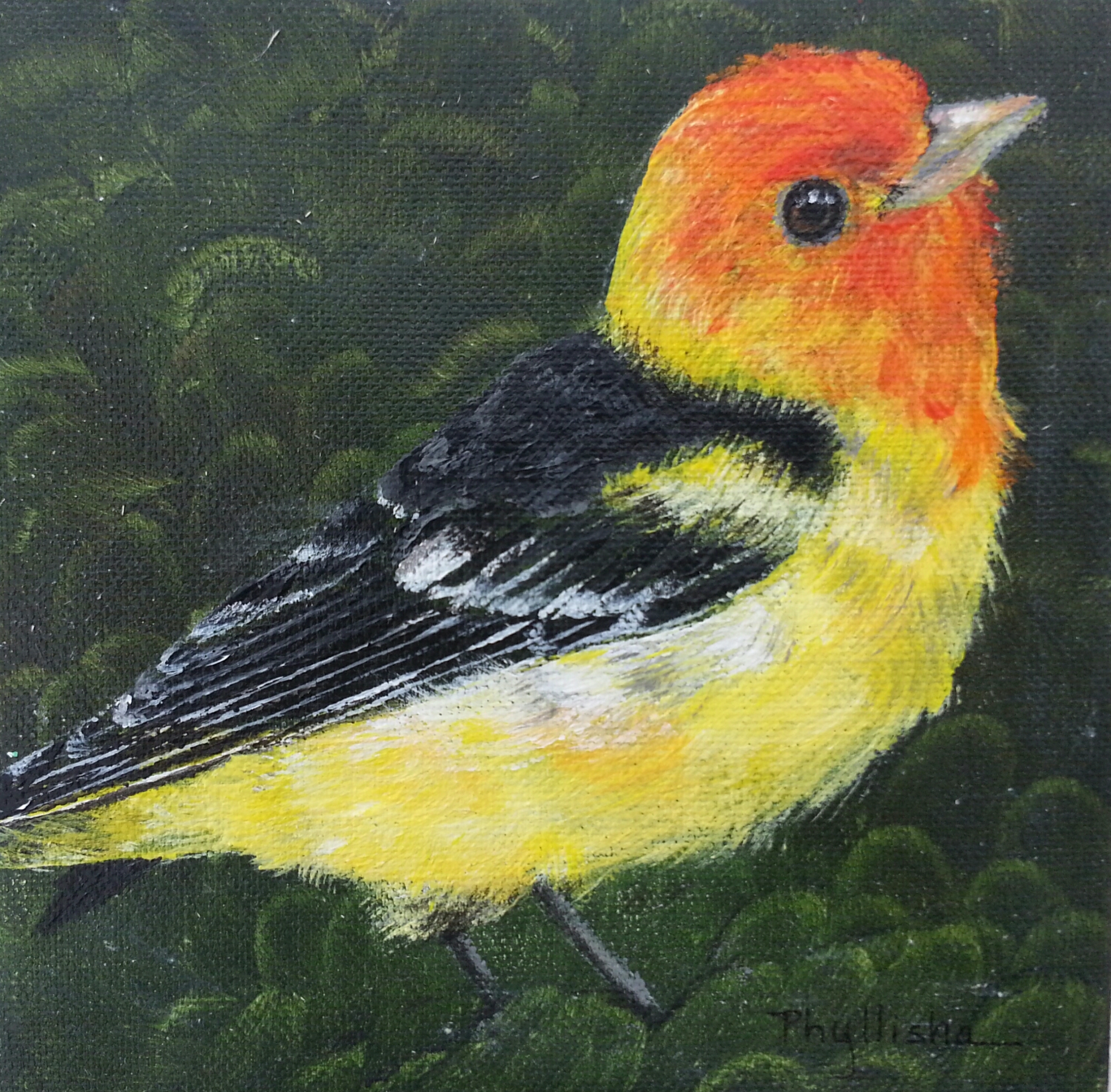 I love Western Tanagers! I saw a nest once with babies. 6″×6″, acrylic