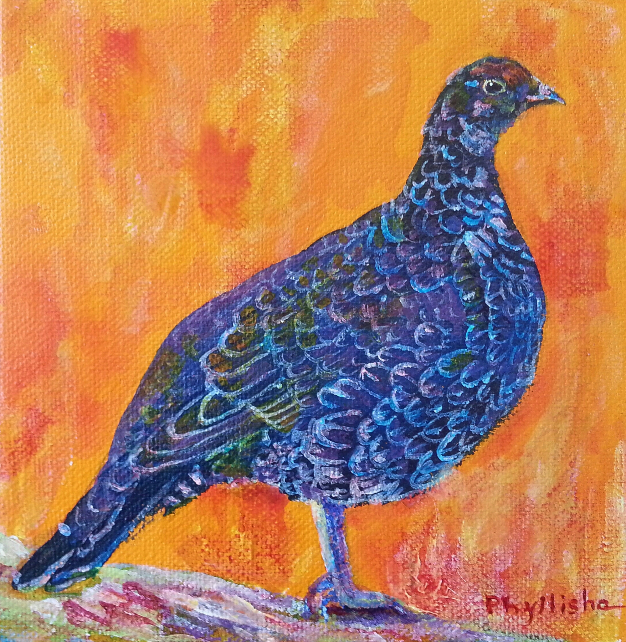This is a painting of a Dusky Grouse I saw up in the Sangre de Christo mountains where I live. I just think they are the most beautiful birds! Click here to purchase.