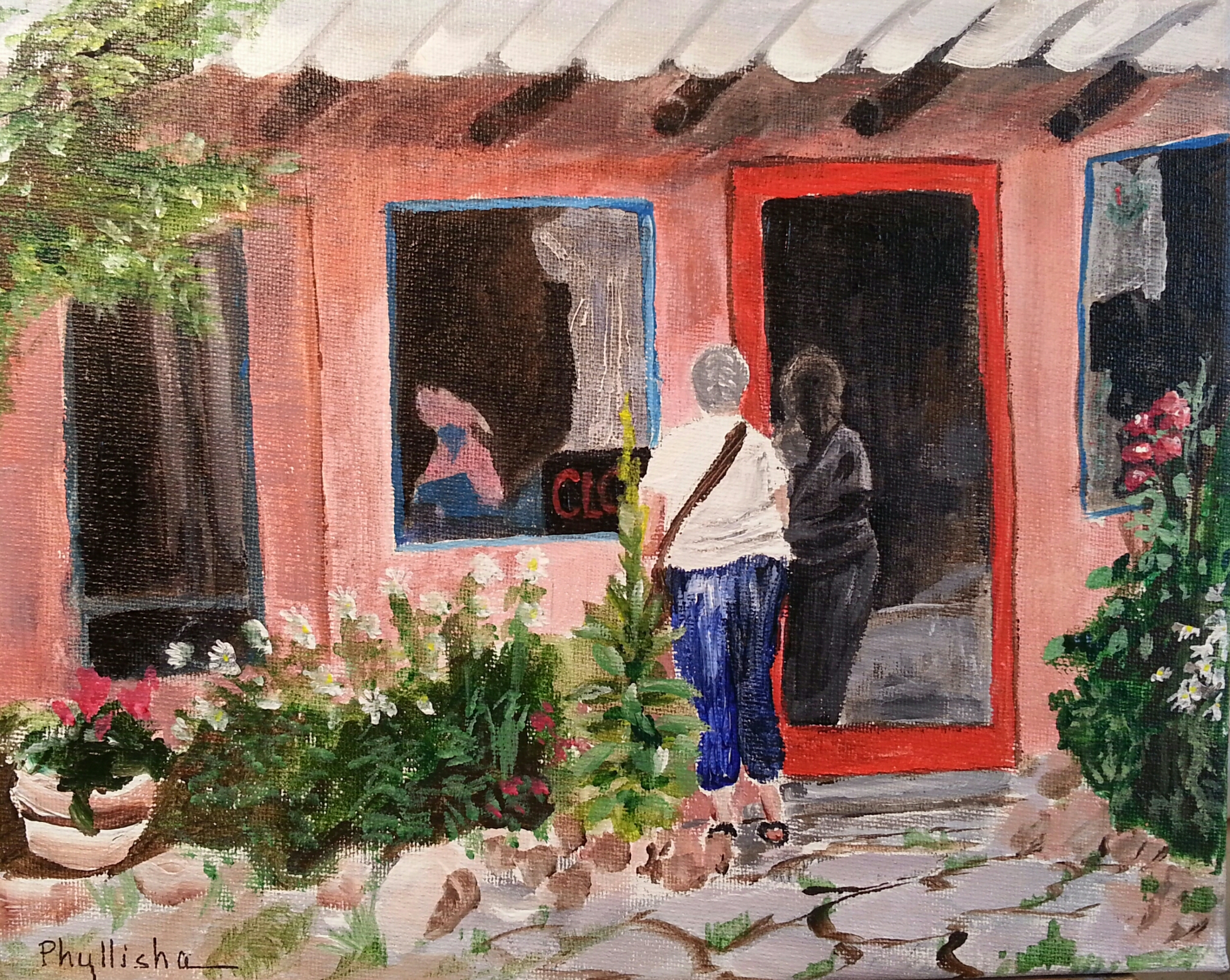 This is a scene of a shop front in Madrid, New Mexico. It is an artistic revitalized ghost town near Santa Fe. Click here for purchase information.