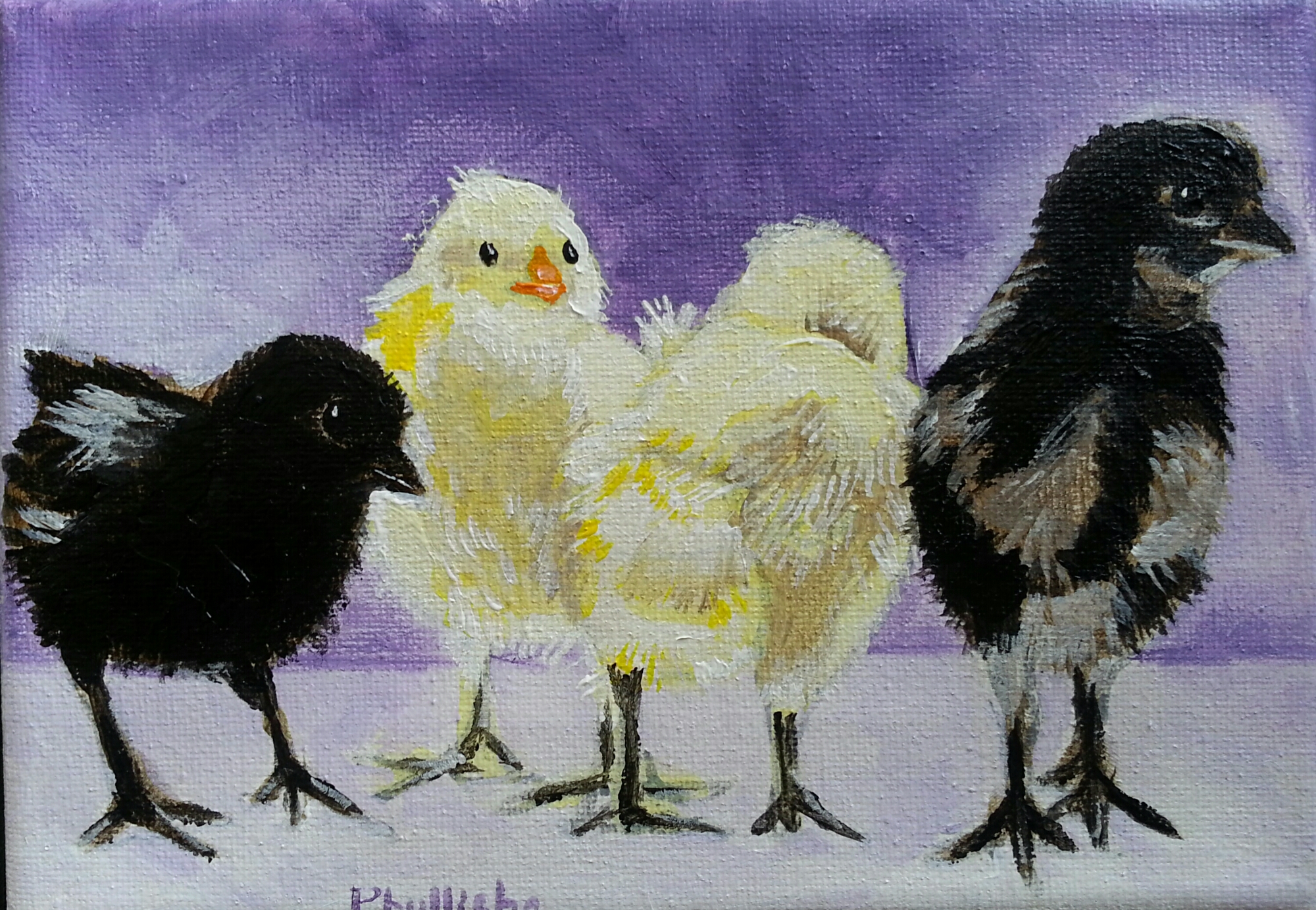 Four Little Chicks August 15, 2015August 15, 2015phyllishafineart Leave a comment 5″×7″, acrylic. I try to get up at 6am every day and paint for an hour. It really does not matter what I paint just that I do it! “If you want your dreams to come true, don’t oversleep.” Yiddish Proverb Share this with anyone interested. Click to share on X (Opens in new window) X Click to share on Facebook (Opens in new window) Facebook Click to share on Pinterest (Opens in new window) Pinterest Click to share on LinkedIn (Opens in new window) LinkedIn Click to email a link to a friend (Opens in new window) Email Click to print (Opens in new window) Print Click to share on Tumblr (Opens in new window) Tumblr Click to share on Pocket (Opens in new window) Pocket Click to share on Reddit (Opens in new window) Reddit Like Loading... Related