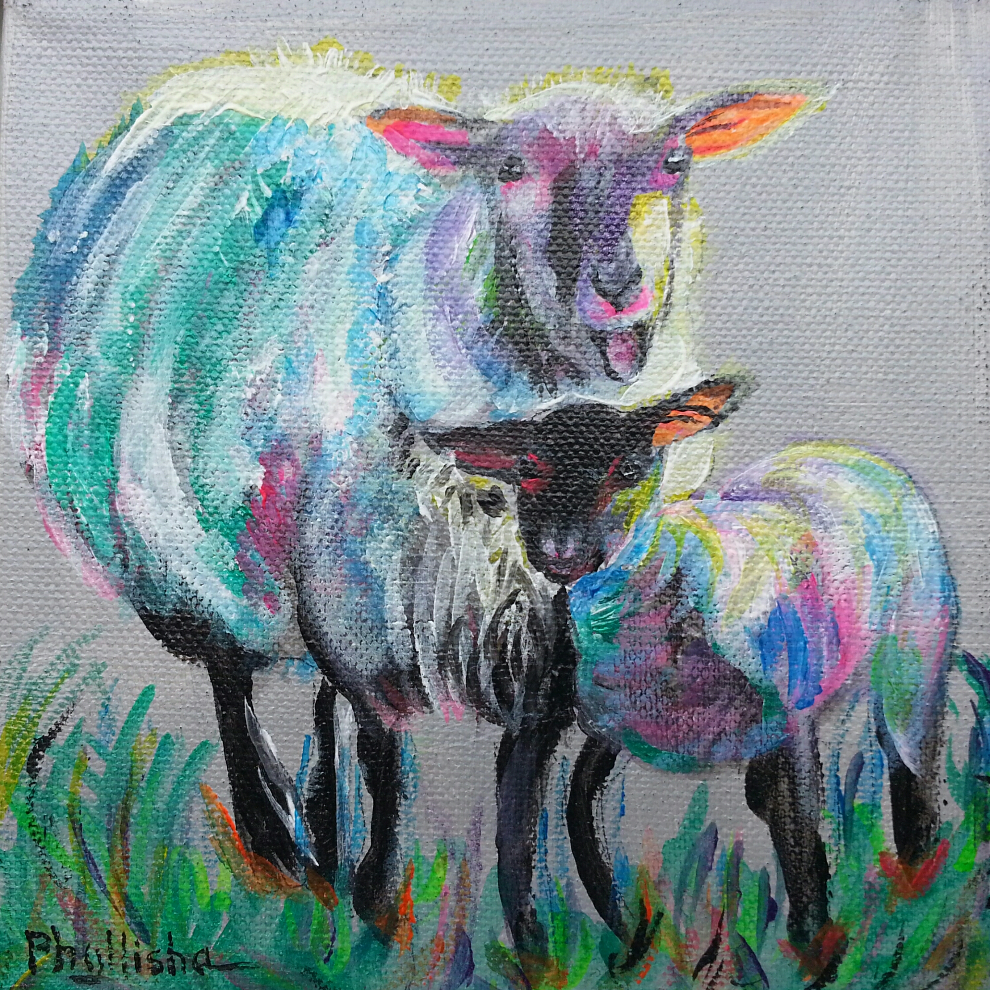 6″×6″, acrylic. I bought a set of metallics   and fluorescents with my 40% off coupon for Michael’s craft store and have been having fun playing with color!  Don’t worry, I’ll go back to ‘normal’ painting every once in a while too. 🙂