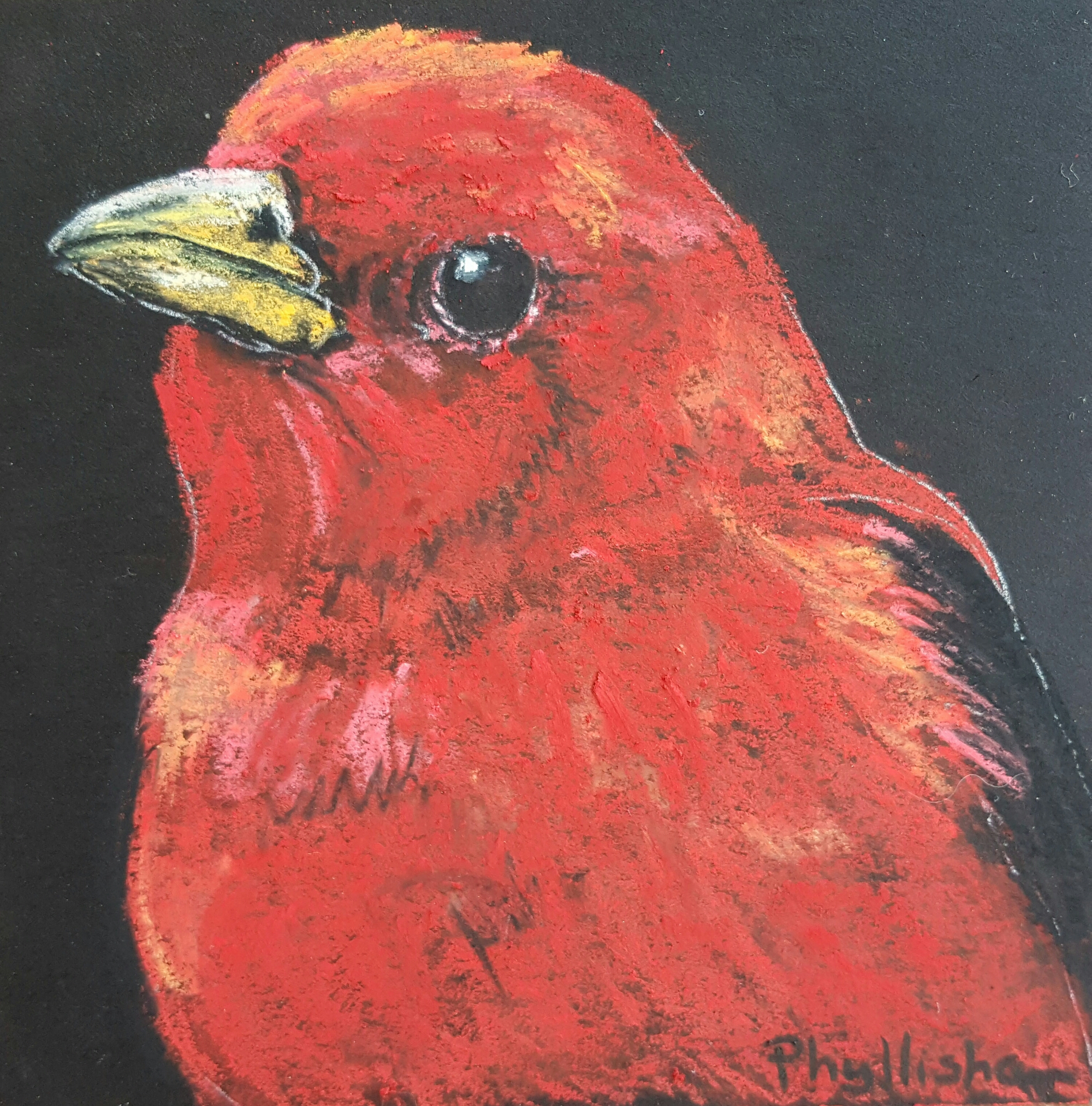 Scarlett Tanager July 25, 2016July 25, 2016phyllishafineart Leave a comment 3″×3″, Scarlett Tanager, pastel. Working on minis today. So expect a few more. I bought these adorable glass frames that I need to use up… Share this with anyone interested. Click to share on X (Opens in new window) X Click to share on Facebook (Opens in new window) Facebook Click to share on Pinterest (Opens in new window) Pinterest Click to share on LinkedIn (Opens in new window) LinkedIn Click to email a link to a friend (Opens in new window) Email Click to print (Opens in new window) Print Click to share on Tumblr (Opens in new window) Tumblr Click to share on Pocket (Opens in new window) Pocket Click to share on Reddit (Opens in new window) Reddit Like Loading... Related