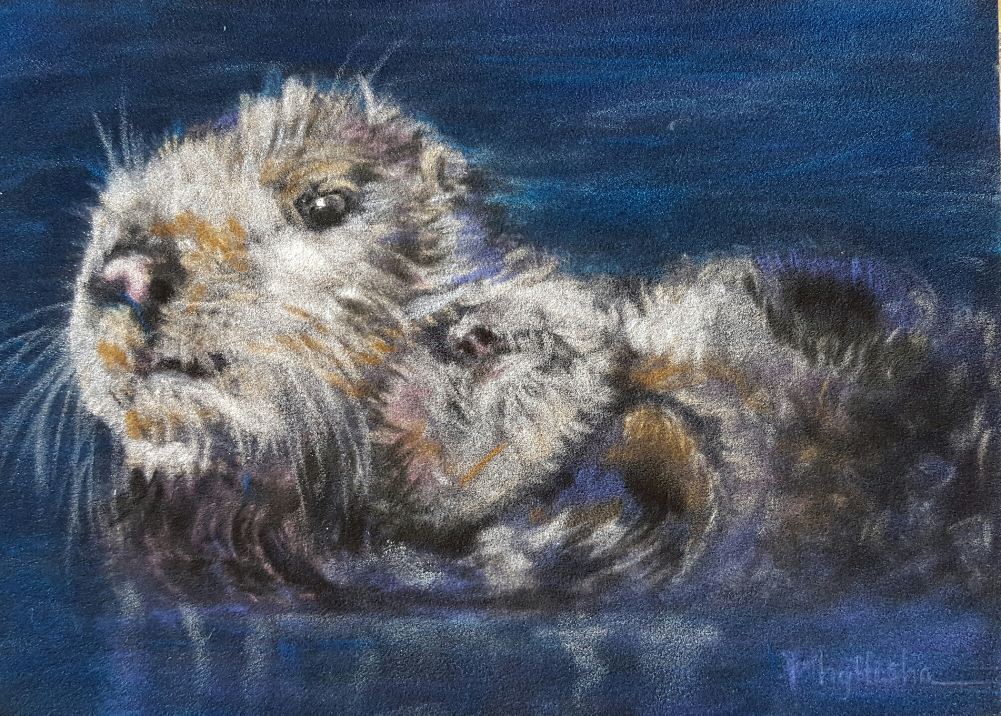 Just a ‘Little Otter’, 5″×7″, pastel on velour paper.
