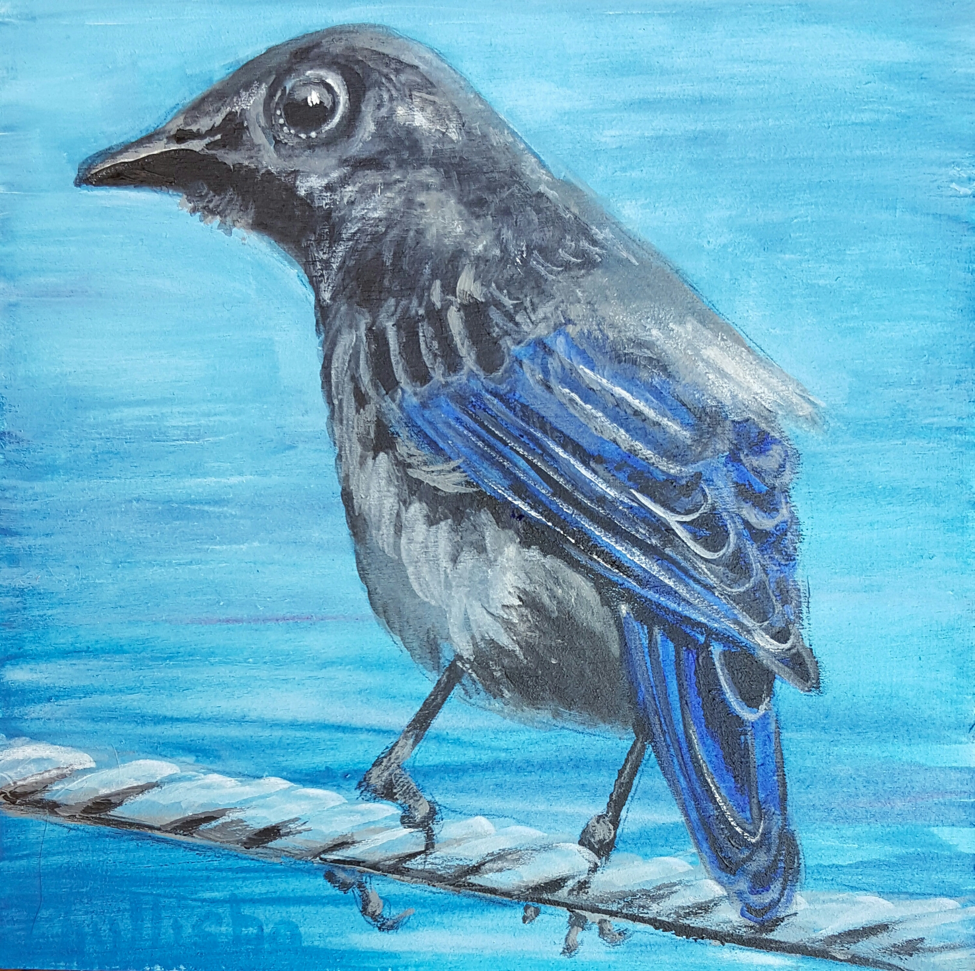 6″×6″, acrylic on cradled wood panel, ‘Mountain Bluebird’.