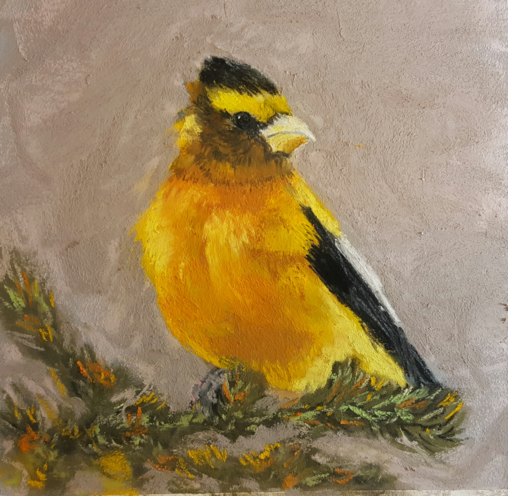 New work, Winter Visitor January 3, 2017January 26, 2017phyllishafineart 2 Comments Evening Grossbeak, ~8″×8″, pastel. One of the more colorful sights in winter. Evening Grossbeaks often visit backyard feeders. They love sunflower seeds. Share this with anyone interested. Click to share on X (Opens in new window) X Click to share on Facebook (Opens in new window) Facebook Click to share on Pinterest (Opens in new window) Pinterest Click to share on LinkedIn (Opens in new window) LinkedIn Click to email a link to a friend (Opens in new window) Email Click to print (Opens in new window) Print Click to share on Tumblr (Opens in new window) Tumblr Click to share on Pocket (Opens in new window) Pocket Click to share on Reddit (Opens in new window) Reddit Like Loading... Related