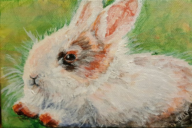 ‘A Little Bunny’, 4″×6″, acrylic. NFS. going to charity auction.