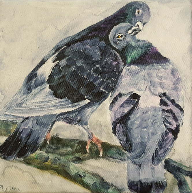 Pigeons in Love April 22, 2017phyllishafineart Leave a comment ‘Pigeons in Love’, 8″x8″, acrylic. I love pigeons and have a flock that visit my home daily. They are really very sweet birds. Share this with anyone interested. Click to share on X (Opens in new window) X Click to share on Facebook (Opens in new window) Facebook Click to share on Pinterest (Opens in new window) Pinterest Click to share on LinkedIn (Opens in new window) LinkedIn Click to email a link to a friend (Opens in new window) Email Click to print (Opens in new window) Print Click to share on Tumblr (Opens in new window) Tumblr Click to share on Pocket (Opens in new window) Pocket Click to share on Reddit (Opens in new window) Reddit Like Loading... Related