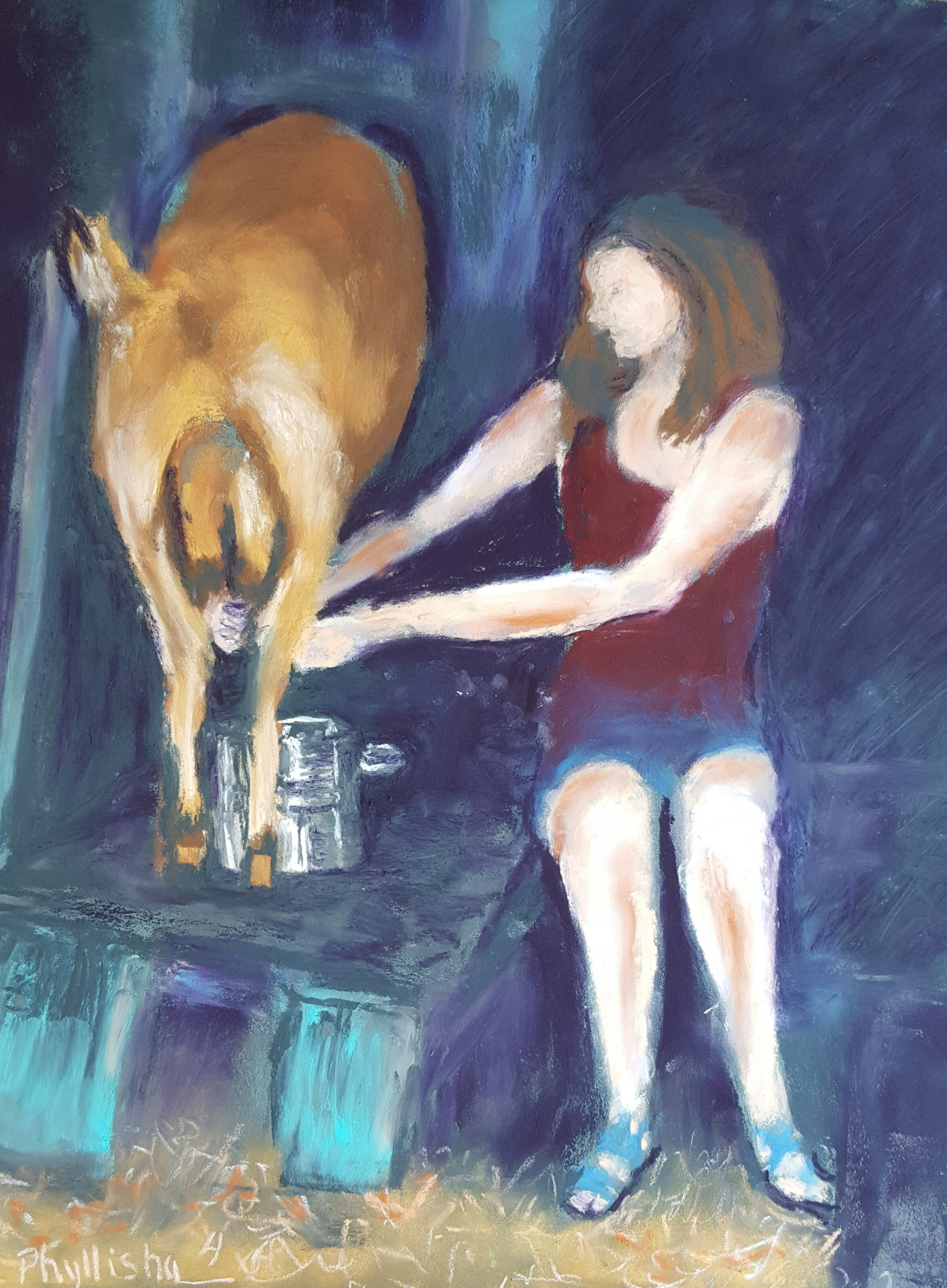 Allison Milking the Goats June 23, 2017June 24, 2017phyllishafineart Leave a comment So I drove up to a place near #questanewmexico called Lama and found this barn with all these horses and #goats. Then along came Allison, a real person, to milk five of the goats and I saw my opportunity to capture this scene. 11″×14″, #pastel Share this with anyone interested. Share on X (Opens in new window) X Share on Facebook (Opens in new window) Facebook Share on Pinterest (Opens in new window) Pinterest Share on LinkedIn (Opens in new window) LinkedIn Email a link to a friend (Opens in new window) Email Print (Opens in new window) Print Share on Tumblr (Opens in new window) Tumblr Share on Reddit (Opens in new window) Reddit Like Loading... Related