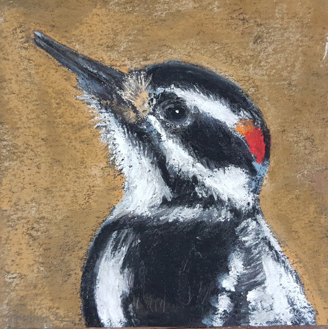 4″×4″, pastel and pencil. Downy Woodpecker. Challenging to paint. ‘Soul painting’ series.
