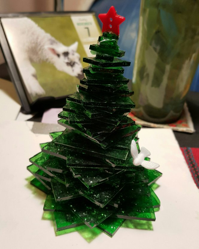 Glass Christmas Tree November 7, 2017phyllishafineart Leave a comment I love playing with all things glass! Cut a bunch of different size pieces of green glass, stacked and glued them, then added a red star and a white dove Share this with anyone interested. Click to share on X (Opens in new window) X Click to share on Facebook (Opens in new window) Facebook Click to share on Pinterest (Opens in new window) Pinterest Click to share on LinkedIn (Opens in new window) LinkedIn Click to email a link to a friend (Opens in new window) Email Click to print (Opens in new window) Print Click to share on Tumblr (Opens in new window) Tumblr Click to share on Pocket (Opens in new window) Pocket Click to share on Reddit (Opens in new window) Reddit Like Loading... Related