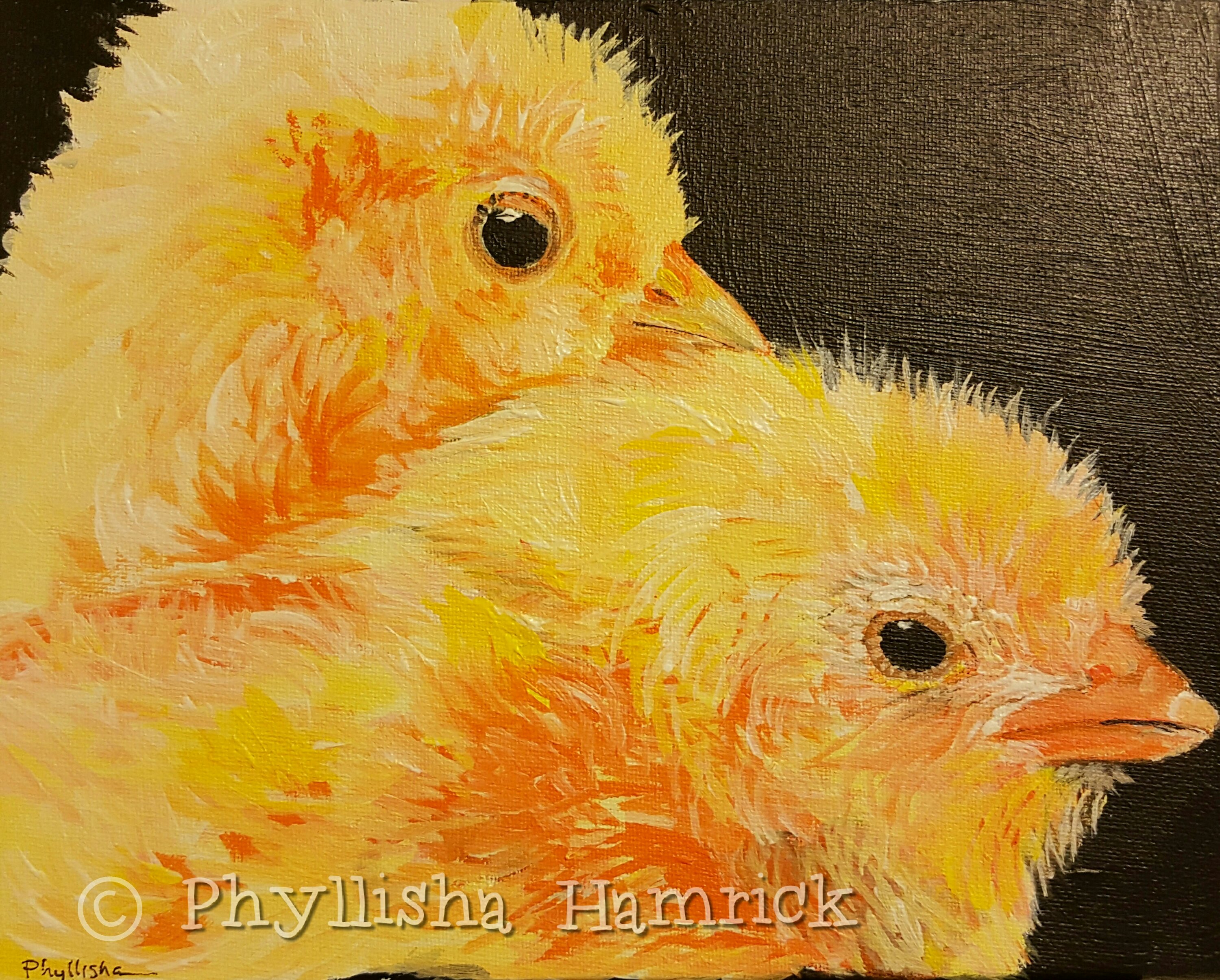 Two Little Chicks November 25, 2017phyllishafineart Leave a comment 8″×10″, acrylic, ‘Two Little Chicks’. In tribute to all the male chicks ground up alive as by waste in th e chicken meat business. Share this with anyone interested. Share on X (Opens in new window) X Share on Facebook (Opens in new window) Facebook Share on Pinterest (Opens in new window) Pinterest Share on LinkedIn (Opens in new window) LinkedIn Email a link to a friend (Opens in new window) Email Print (Opens in new window) Print Share on Tumblr (Opens in new window) Tumblr Share on Reddit (Opens in new window) Reddit Like Loading... Related