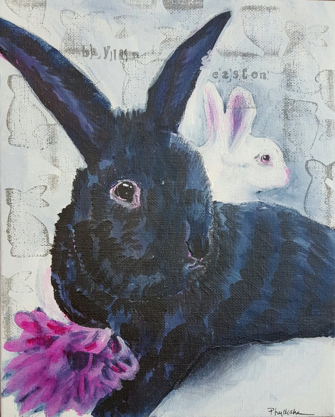 Baylin and Easton are both available for adoption at the Midwest Rabbit Rescue and ReHome in Plymouth Michigan. 8″×10″, acrylic