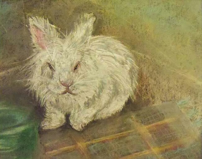 Will be posting some older works as I’m going on a short trip and do not have time to paint but want to keep up the rabbit theme. This is a pastel I did when I first started working in pastels, ~2007, and was my first donation to Midwest Rabbit Rescue and ReHome