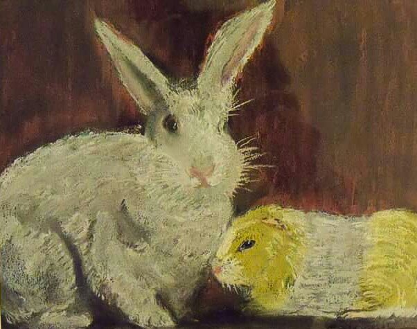 Scraping the bottom of the barrel for bunny pics. This is one of my very early pastels, done about 2007. I am stuck at a Colorado ski area. Oh such troubles! 😉