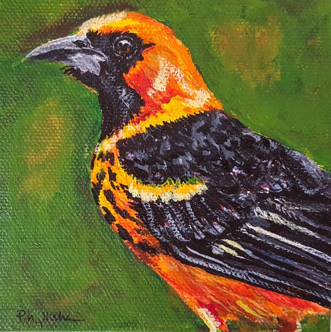 Spot Breasted Oriole April 20, 2018phyllishafineart Leave a comment 4″×4″, acrylic on canvas. The Orioles are on the way back and may have already arrived in some places! Share this with anyone interested. Share on X (Opens in new window) X Share on Facebook (Opens in new window) Facebook Share on Pinterest (Opens in new window) Pinterest Share on LinkedIn (Opens in new window) LinkedIn Email a link to a friend (Opens in new window) Email Print (Opens in new window) Print Share on Tumblr (Opens in new window) Tumblr Share on Reddit (Opens in new window) Reddit Like Loading... Related