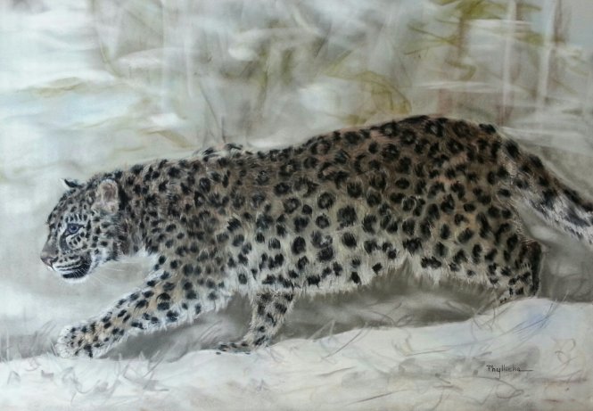 Very large, 24″×19″, pastel, sold. Amur Leopard done in Lesley Harrison workshop. I’m returning this summer to take her Big Cat workshop near Sutter Creek, California. Can’t wait! Of course after seeing the movie ‘Winchester’, with Helen Mirren, I plan to stop by and take a tour of the most haunted house in the US!