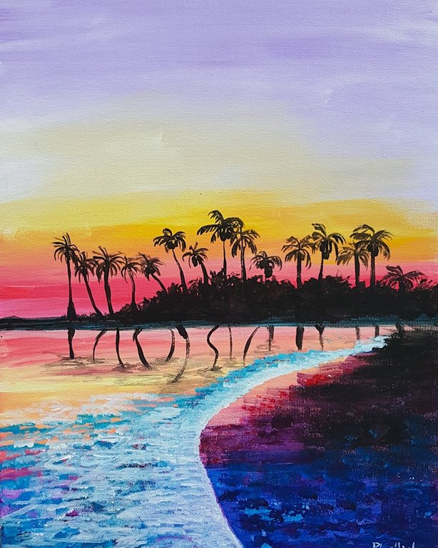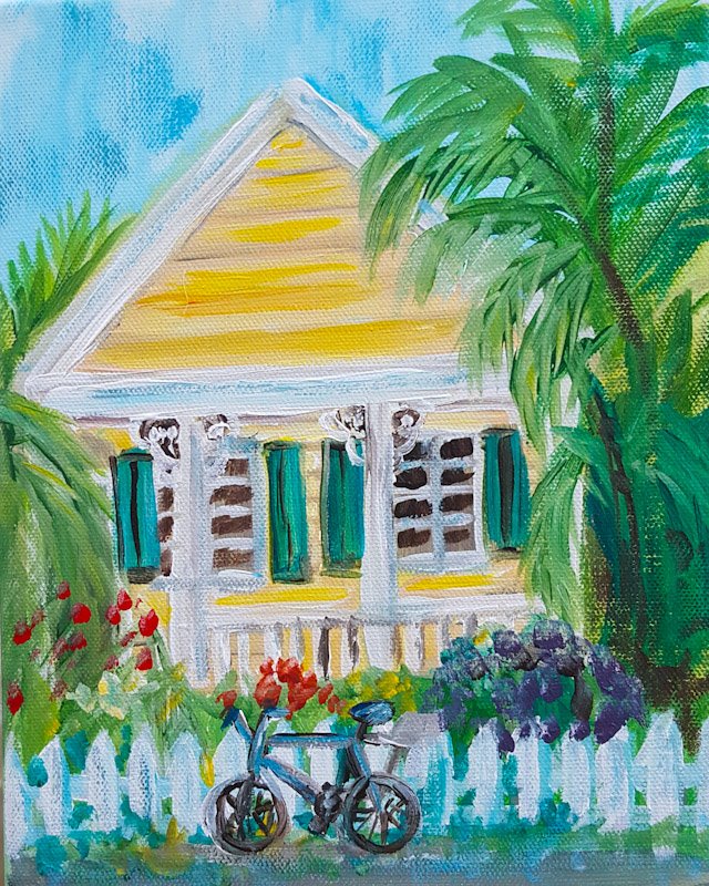 ‘Fall in the Keys’, 11″×14″, acrylic. And my very first ‘Conch House’, 8″×10″, acrylic, done in plein air.